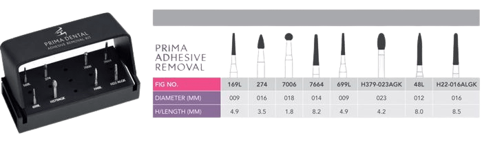 Prima Dental offers a variety of bur kits containing a unique set of instruments which are required to achieve optimal results for a variety of procedures. These kits have been developed by significant clinicians of leading universities worldwide. Prima Orthodontic Adhesive Removal Kit can be used for de-bonding and removal of adhesive.