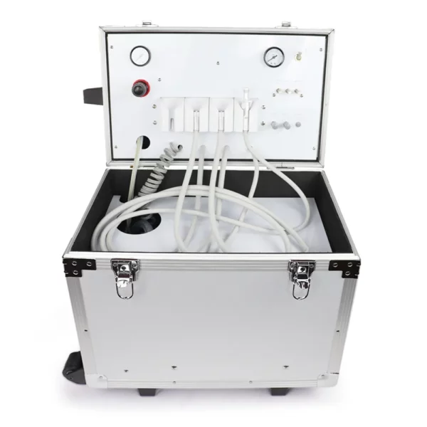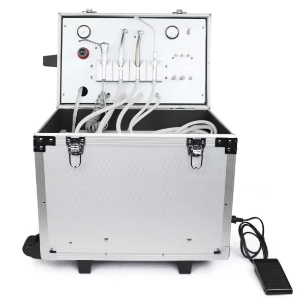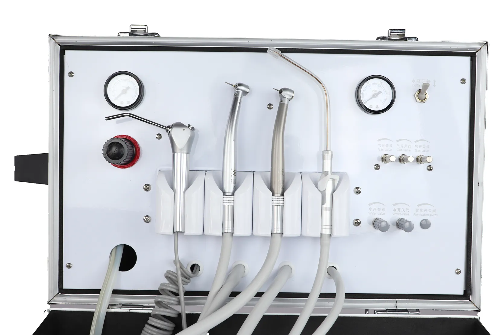 Waldent Innovations introduces the Portable Dental Unit with a beautiful, multi-functional,well-equipped complete dental unit. High-quality aluminum alloy materials used in the portable box making it strong, beautiful, light, all the configurations are installed in the box, easy to transport, carry.